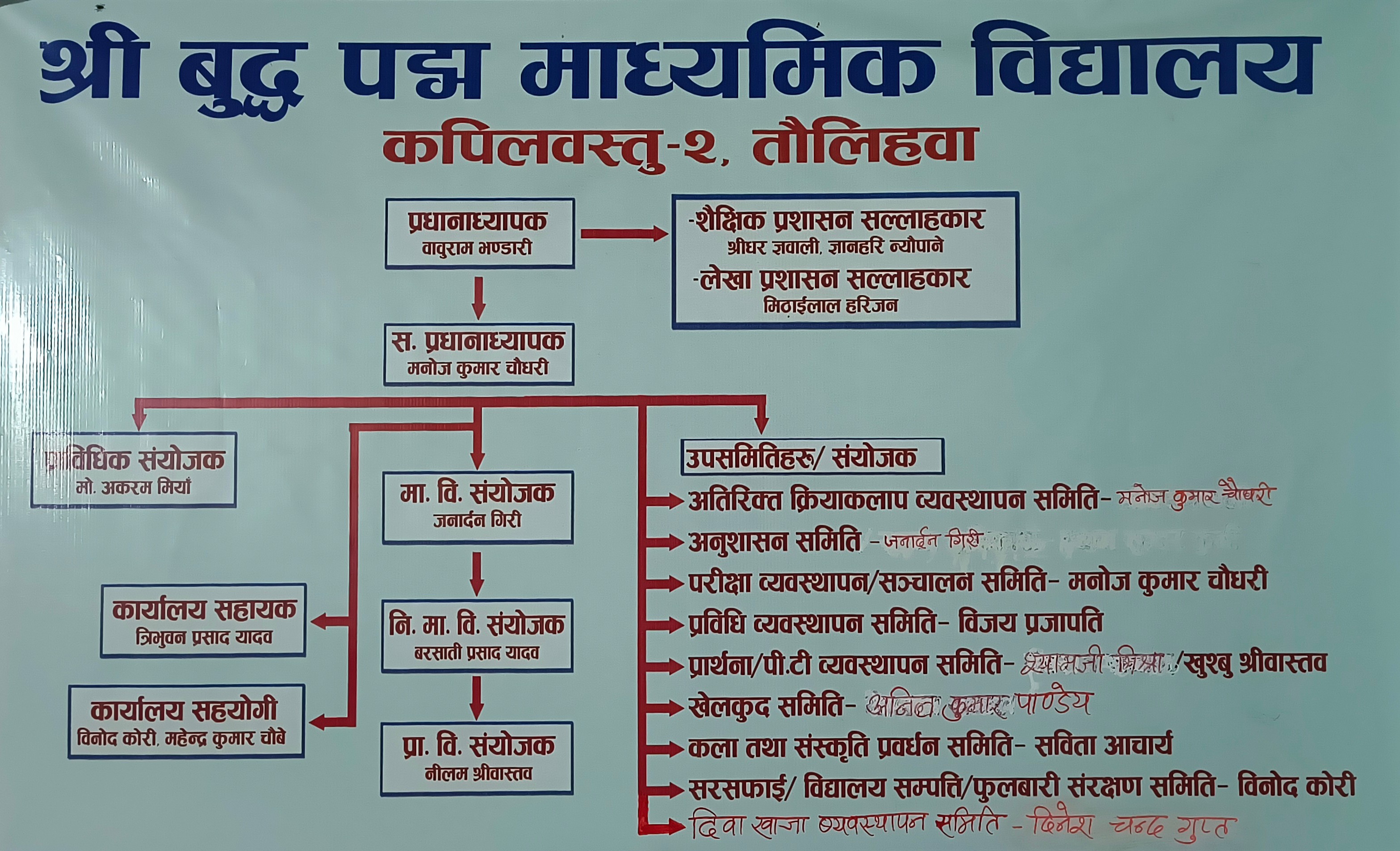 आज मिति २०८१ माघ १२ गते शनिवारका दिन श्री बुद्ध पद्म मा.बि. तौलिहवा पुर्व बिद्यार्थी मञ्च तदर्थ समितीको बैठक मञ्चका अध्यक्ष श्री संजय लम्साल ज्युको अध्यक्षमा सम्पन्न भयो । बैठकमा कार्य समितीका सदस्यहरु, पदेन सदस्य बिद्यालयका प्रधानाध्यापक श्री बाबुराम भण्डारी, आमन्त्रित सदस्य पुर्व बिद्यार्थी श्री शुसिल पौडेलको सहभागीता रहेको थियो । आज सम्पन्न समितीको बैठकले यहि माघ २१ गते बसन्त पन्चमीका दिन बिद्यालयमा आयोजित कार्यक्रममा मञ्चले सक्रिय सहभागीता जनाउने, सोही कार्यक्रममा बिद्यालयका तिन कक्षागत तहमा वर्गिकृत अनुशासित, सिर्जनशिल र साङ्गितिक प्रार्थनामा उत्कृष्ट भुमिका खेलेका ३ छात्र र ३ छात्रा गरि ६ जना बिद्यार्थीलाई झोला, कापी र कलम उपहार दिने, मञ्चको बिधान यथाशिघ्र निर्माण गर्ने र बिभिन्न निकाय सँगको सहकार्यमा बिद्यालयमा सचेतना कार्यक्रम सञ्चालन गर्ने बिषयमा छलफल गरि बिभिन्न निर्णयहरु गरेको छ ।